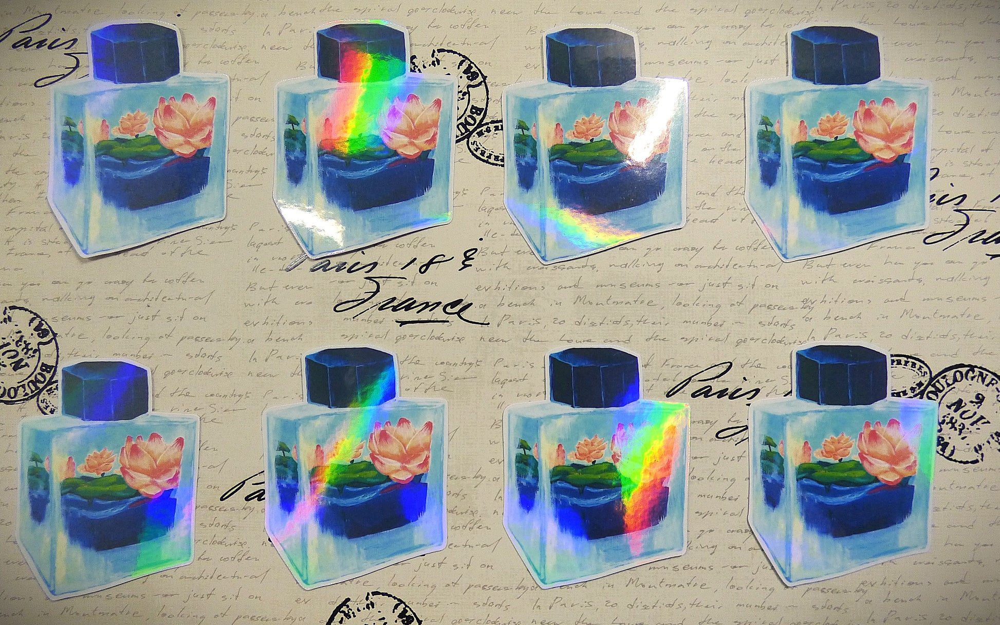 Lotus flowers grow in this Sailor ink bottle in this handpainted design. Be careful not to drop it!